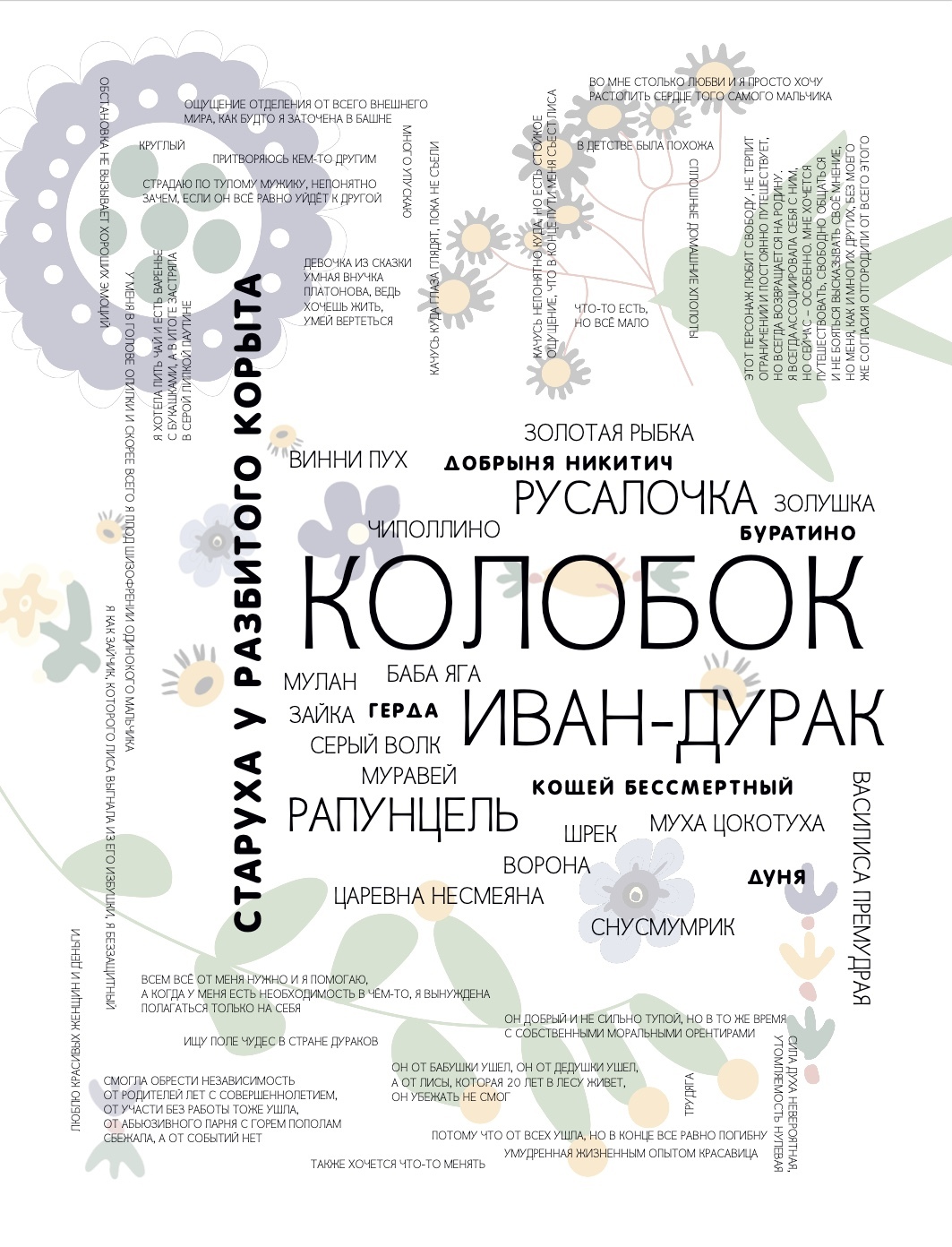 С героем какой сказки вы себя ассоциируете сегодня? На этот вопрос ответили 67 человек в возрасте от 17 до 60 лет. Это облако – небольшой срез современного общества, который показывает, каким сказочным героем себя видит большинство и почему.