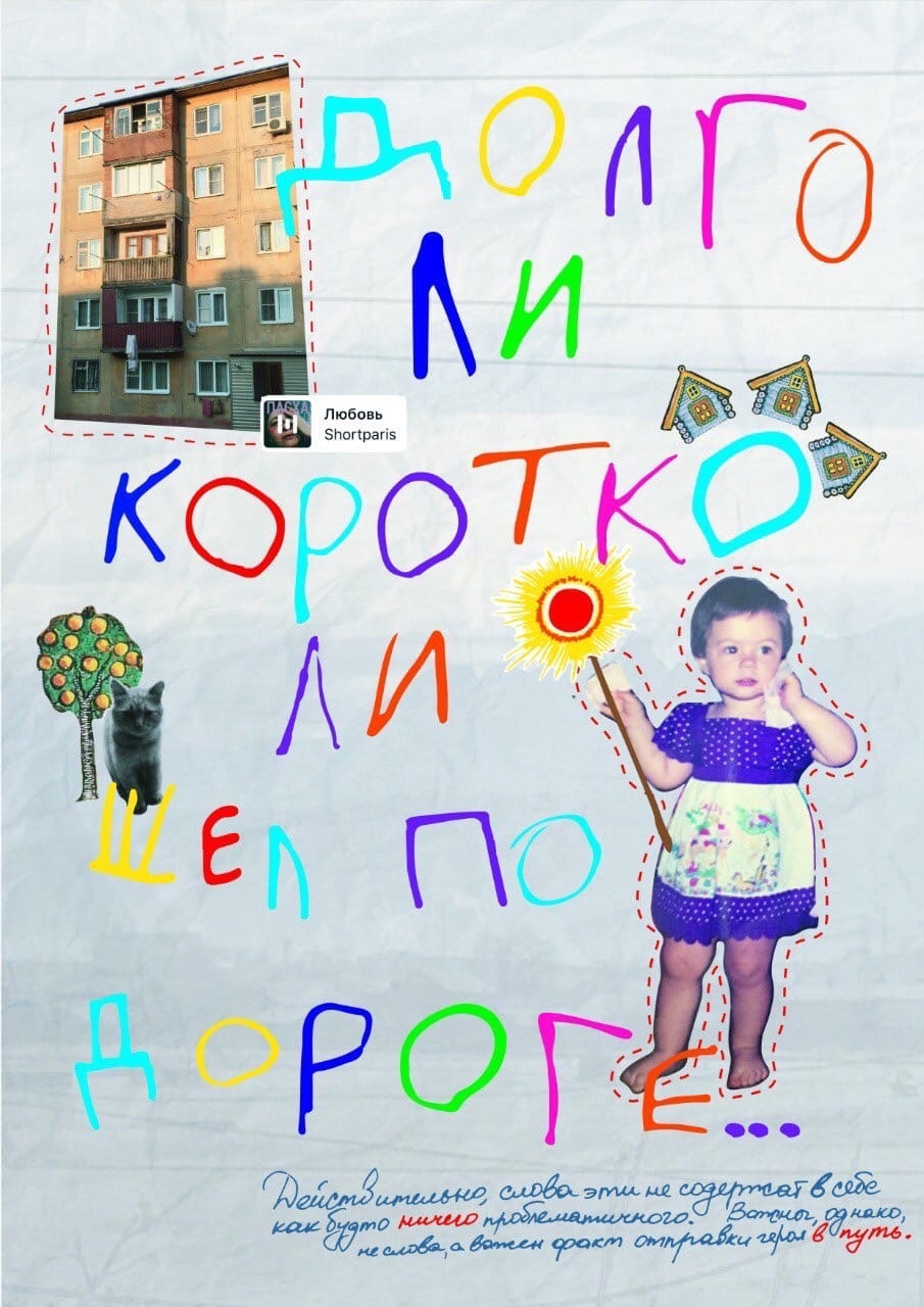 Всех героев, о которых мама читала мне сказки, в пути сопровождало заклинание. «Долголикоротколи» — и на пути встречалась избушка или говорящая птичка. Сейчас, когда я расслышала все слова, они все равно звучат как заговор — ни Иванушка-дурачок, ни Василиса Прекрасная не знали наперёд, долго ли коротко ли им идти. Я тоже.